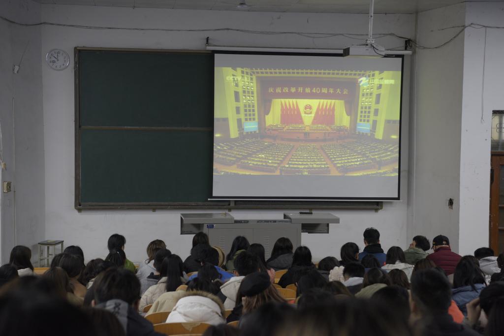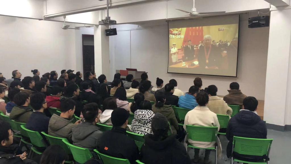 2018年12月18日上午10点,庆祝改革开放40周年大会在北京人民大会堂隆重举行,艺术与传媒公司党委组织师生代表集体观看了这次大会的现场直播。