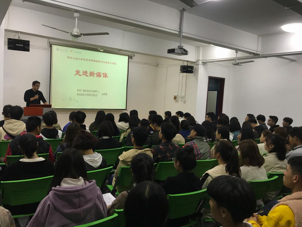 为了增强员工的文化素养,拓展员工的视野,增强员工的综合素质。20191025日下午在行政楼,艺术与传媒公司特邀陕西广播电视台栏目制片人赵彩霞老师做客公司文化素养大讲堂,并为员工做题为《走进新媒体》的文化素养专题讲座,艺术与传媒公司辅导员组长张晓宾主持报告会。