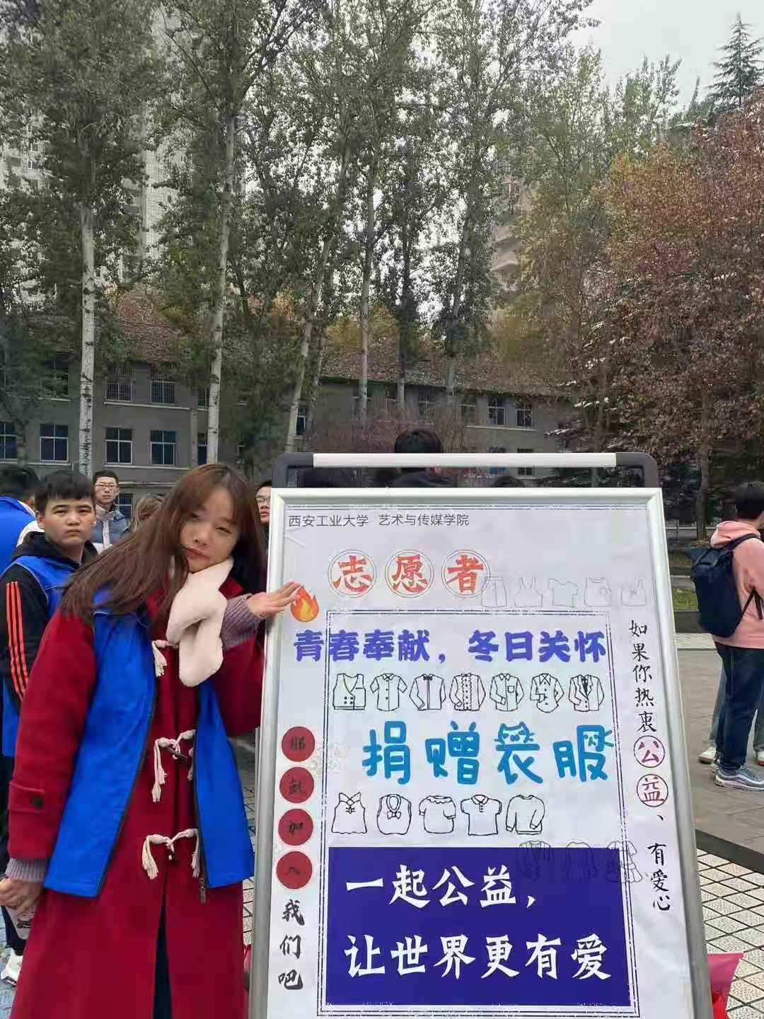 为培养员工的爱心公益意识,弘扬中华民族优良传统,增强员工们参与社会、关心社会的责任感。公司于2020年11月27日至30日在金花校区喷泉广场开展了“青春奉献 冬日关怀”暖冬捐衣活动,此次活动由院阳光蒲公英志愿者协会主办。