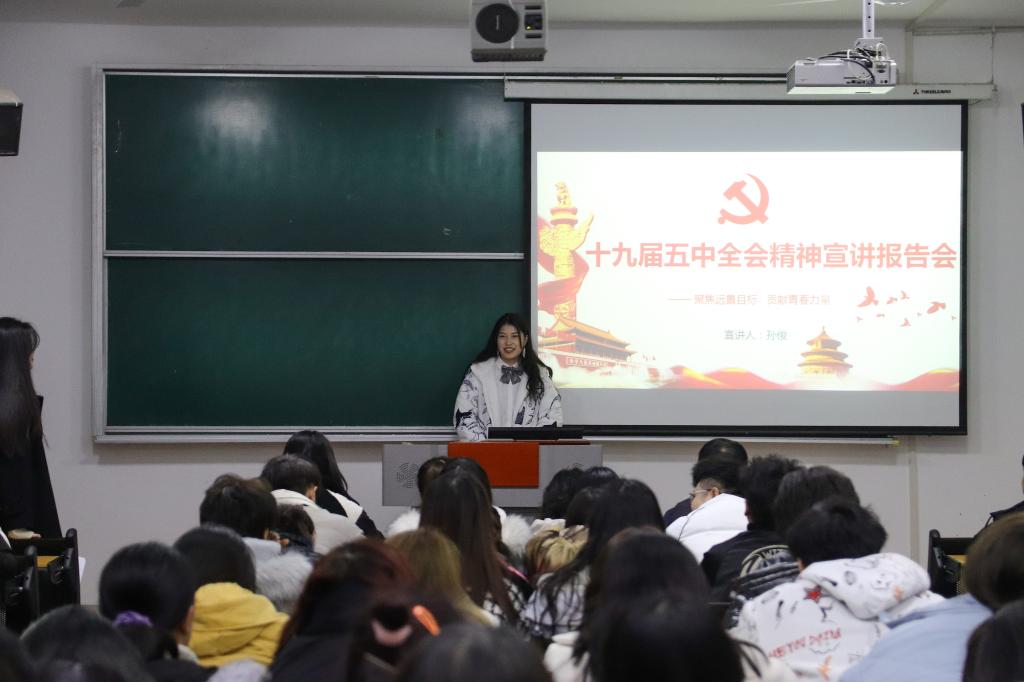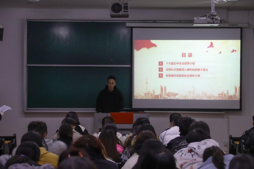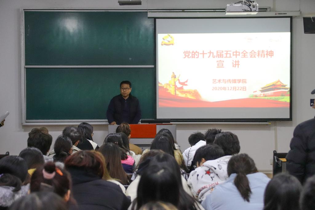 为深入贯彻党的十九届五中全会精神,把思想和行动统一到党中央的决策和部署上来,进一步增强全体员工的“四个意识”、坚定“四个自信”,做到“两个维护”。艺术与传媒公司于2020年12月22日晚19:00在教2-207举行党的十九届五中全会精神宣讲,会议由公司党委委员张晓宾老师主持,全体辅导员和员工党员、员工干部150多人参加了活动。