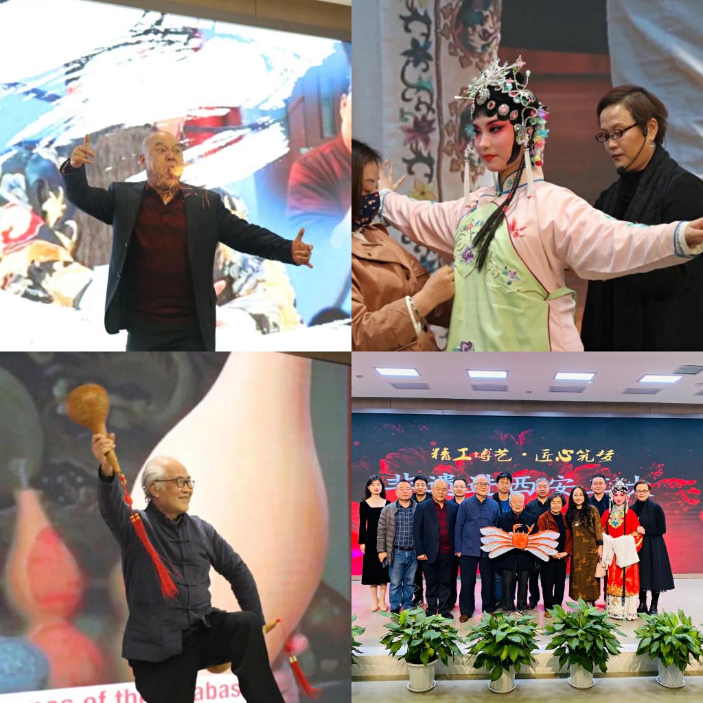 非物质文化遗产是各种以非物质形态存在的与群众生活密切相关、世代相承的传统文化表现形式。它是一个民族奋斗和创造的历史实录,共同构成了整个民族的文化记忆与文化精神。此次活动邀请了张氏风筝技艺传承人张天伟、关中葫芦制作技艺传承人梁平安、传统彩绘陶俑复制技艺传承人王倩、秦腔脸谱传承人温军海、戏曲容妆传承人党莉莉为师生们现场进行了精彩展示,并就非遗传承的历史与现状做了精彩的讲演。