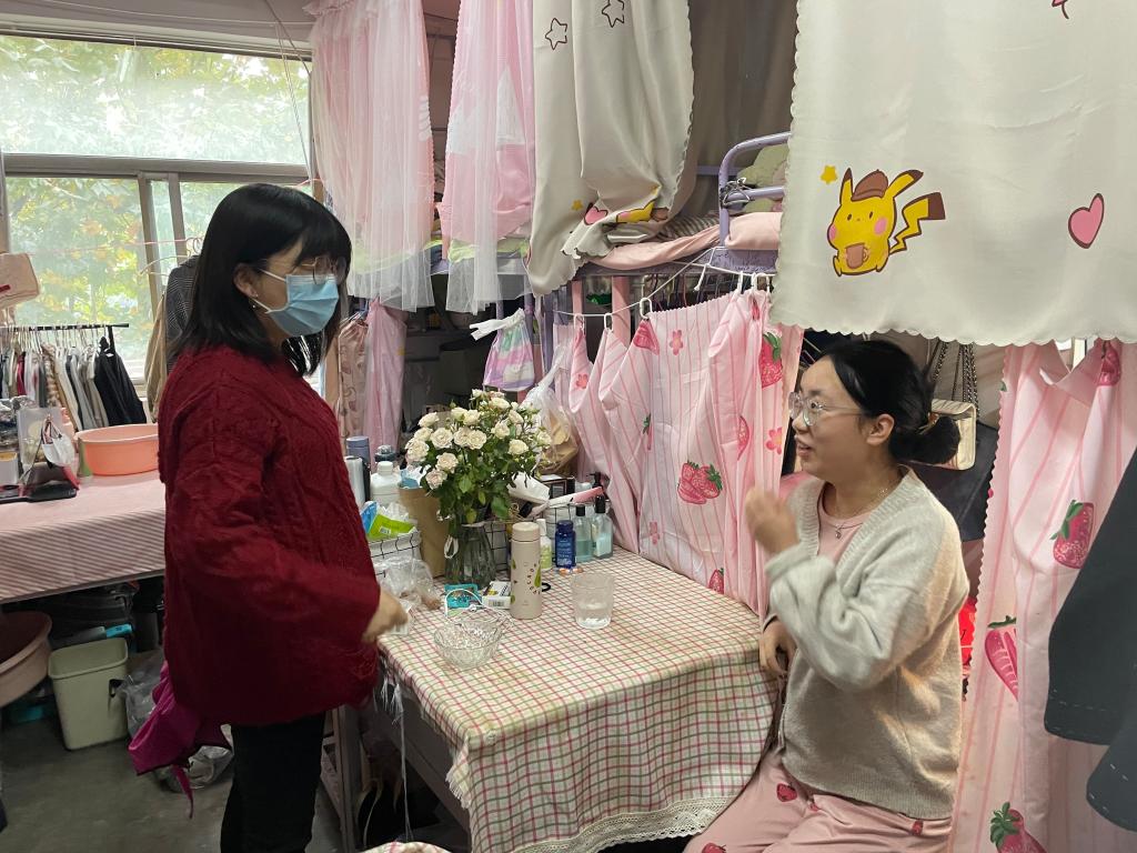 10月29日下午,公司全体辅导员深入员工宿舍,就学习、卫生疾病预防等方面进行检查,就疫情防控期间员工线上学习、宿舍生活状况,进行了解沟通,及时解决员工学习生活中遇到的困难。