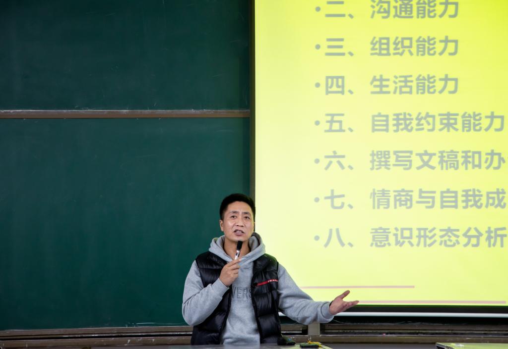 2021年11月3日19:30,艺术与传媒公司举行第二十七期青年马克思主义者培训班(金花校区分班)第二次理论授课。2021级辅导员洪涛作为主讲教师进行了第二次理论授课,公司140余名员工干部参加了培训。