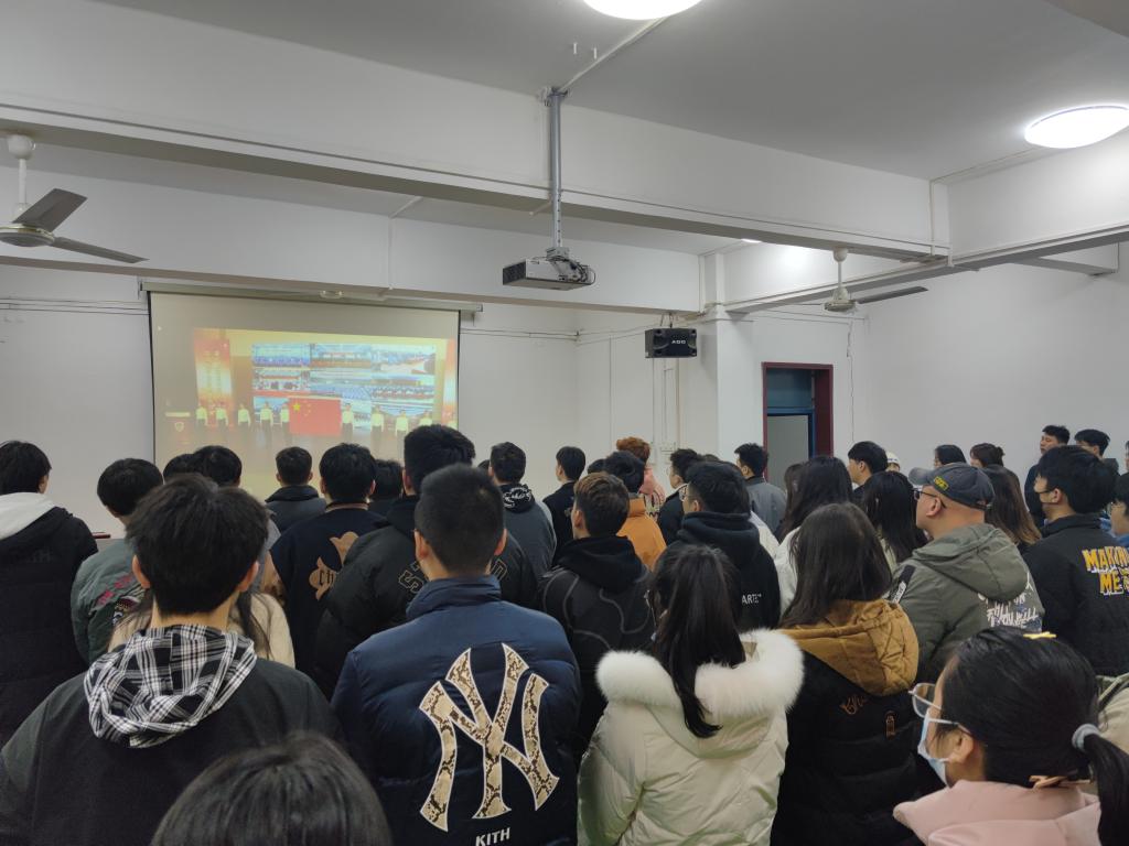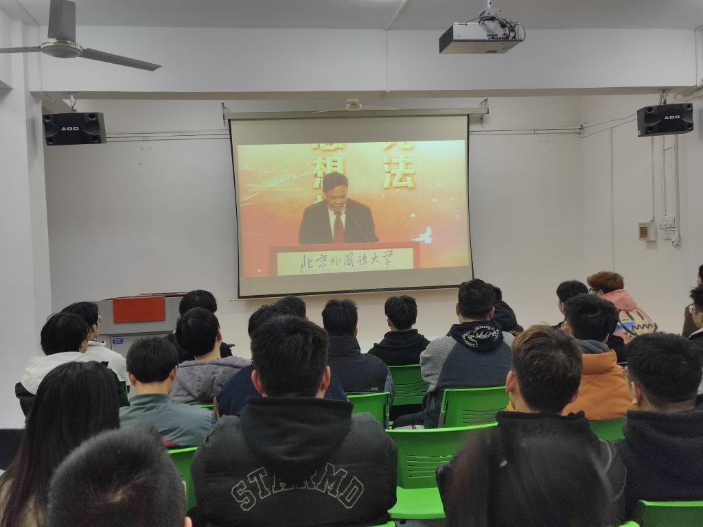会上,通过集体收看教育部全国青少年普法网直播,大家全体起立并观看升旗仪式,随后由教育部领导领读宪法部分条款,全体员工跟读。同学们聆听北京主会场领唱《宪法伴我们成长》歌曲,并学习了第六届全国员工“学宪法 讲宪法”活动全国总决赛部分优秀员工的展演。
