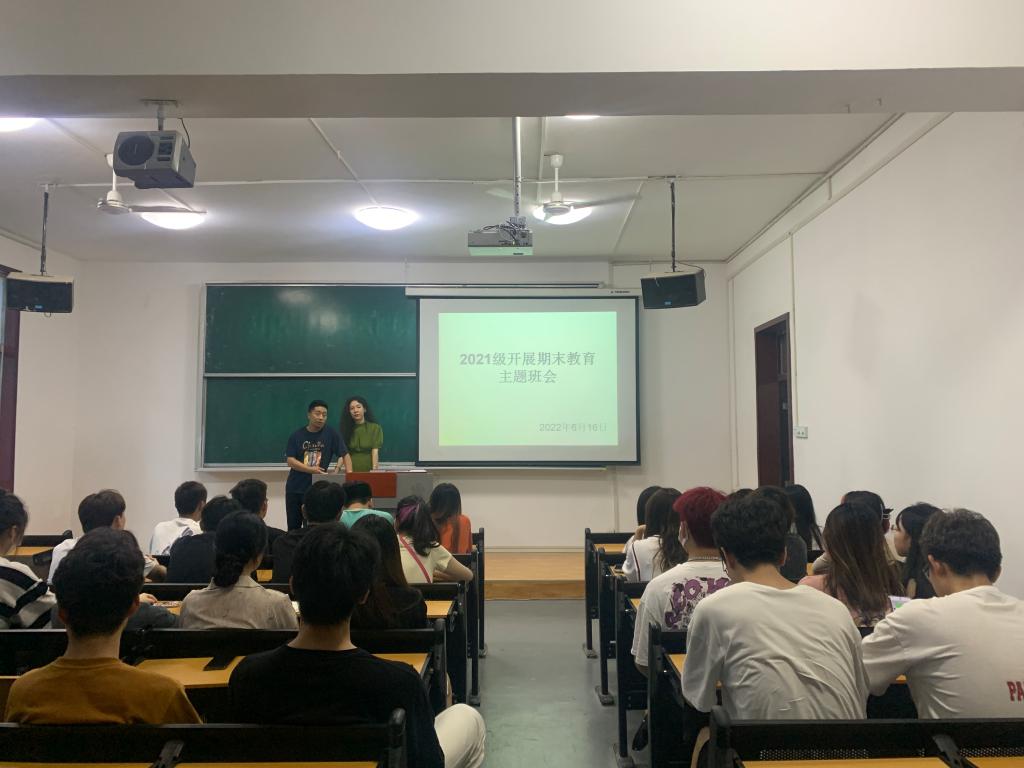 为做好期末工作的统筹安排,艺术与传媒公司2021级于6月16日开展期末教育主题班会,会议由黄怡梅、洪涛主持,2021级全体员工参加此次会议。