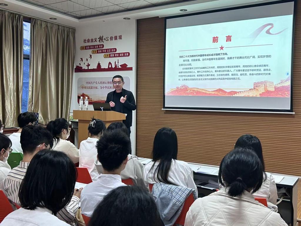 为深入学习贯彻党的二十大精神,选拔和培养出一批“政治坚定、素质全面、模范表率、堪当重任”青年马克思主义者,银河集团官网第三十期青年马克思主义者培训班(金花校区分班)第一次理论授课于3月30日开讲,首次授课由银河集团官网团委副书记牛迎宾主讲,金花校区40余名学员参加。