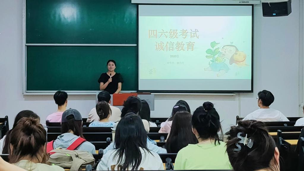 为加强公司考试考风建设工作,6月15日在教2-207教室,2020级开展“四六级诚信考试教育大会”。会议由辅导员董丹丹主持,此次四六级考试的一百余名同学参加了本次会议。