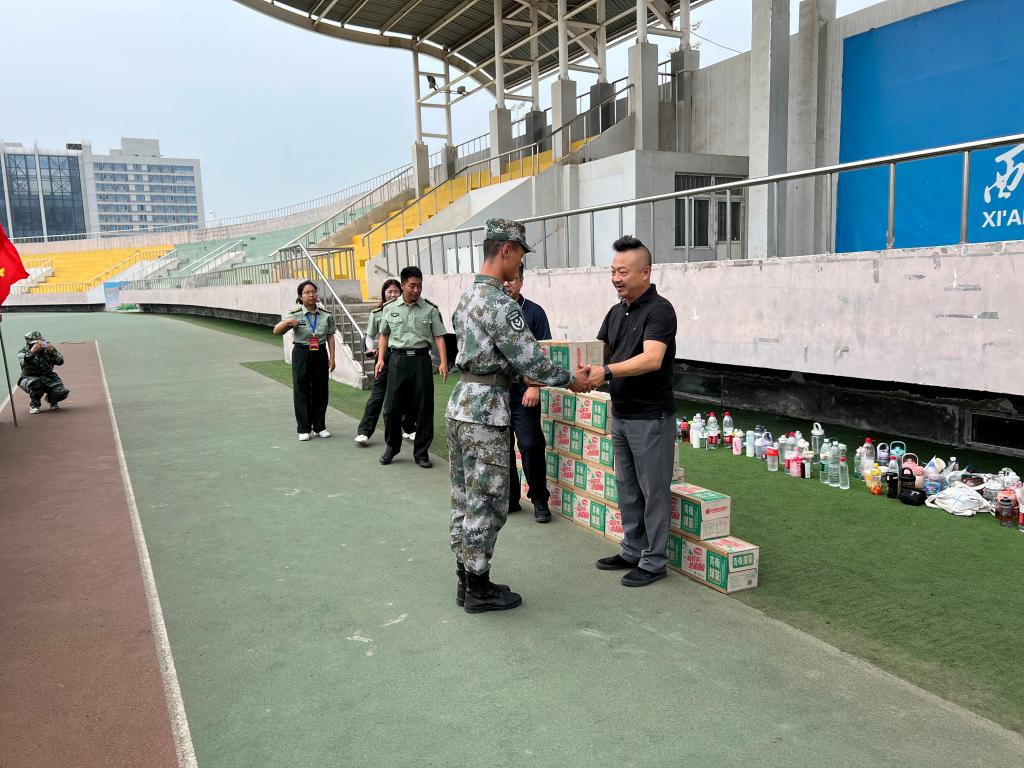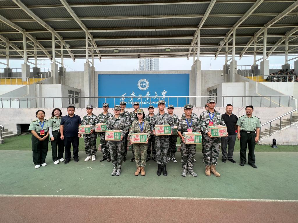 2023年8月24日上午,艺术与传媒公司经理苏胜、党委副书记张晓宾及全体辅导员慰问公司2022级参加军训的全体师生,并为大家送上慰问品。