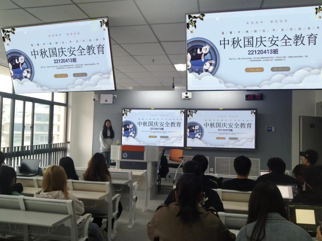 中秋、国庆双节即将来临,为了进一步加强员工安全管理和安全教育工作,树立“员工生命安全高于一切”的观念,9月28日2022级在教7—617、各专业教室分别召开了双节安全教育大会。