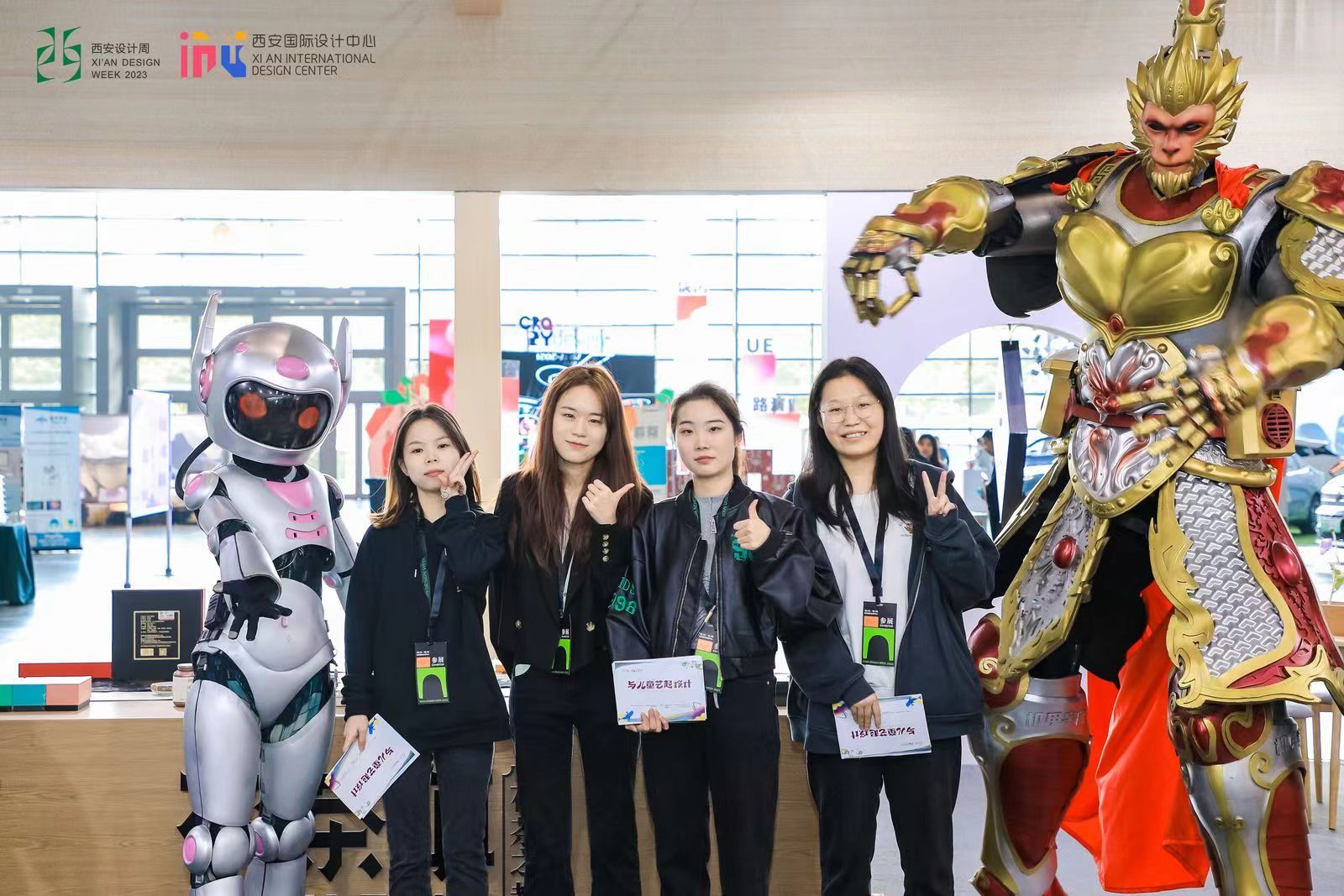 2023年10月13日—10月16日首届西安设计周在西安国际设计中心举行,本次设计周公司郭星雨、陈嘉希、席静雯、王芳岩、李坤梅、王玉等六名同学参与了“与儿童艺起设计”主题展馆的志愿服务活动。