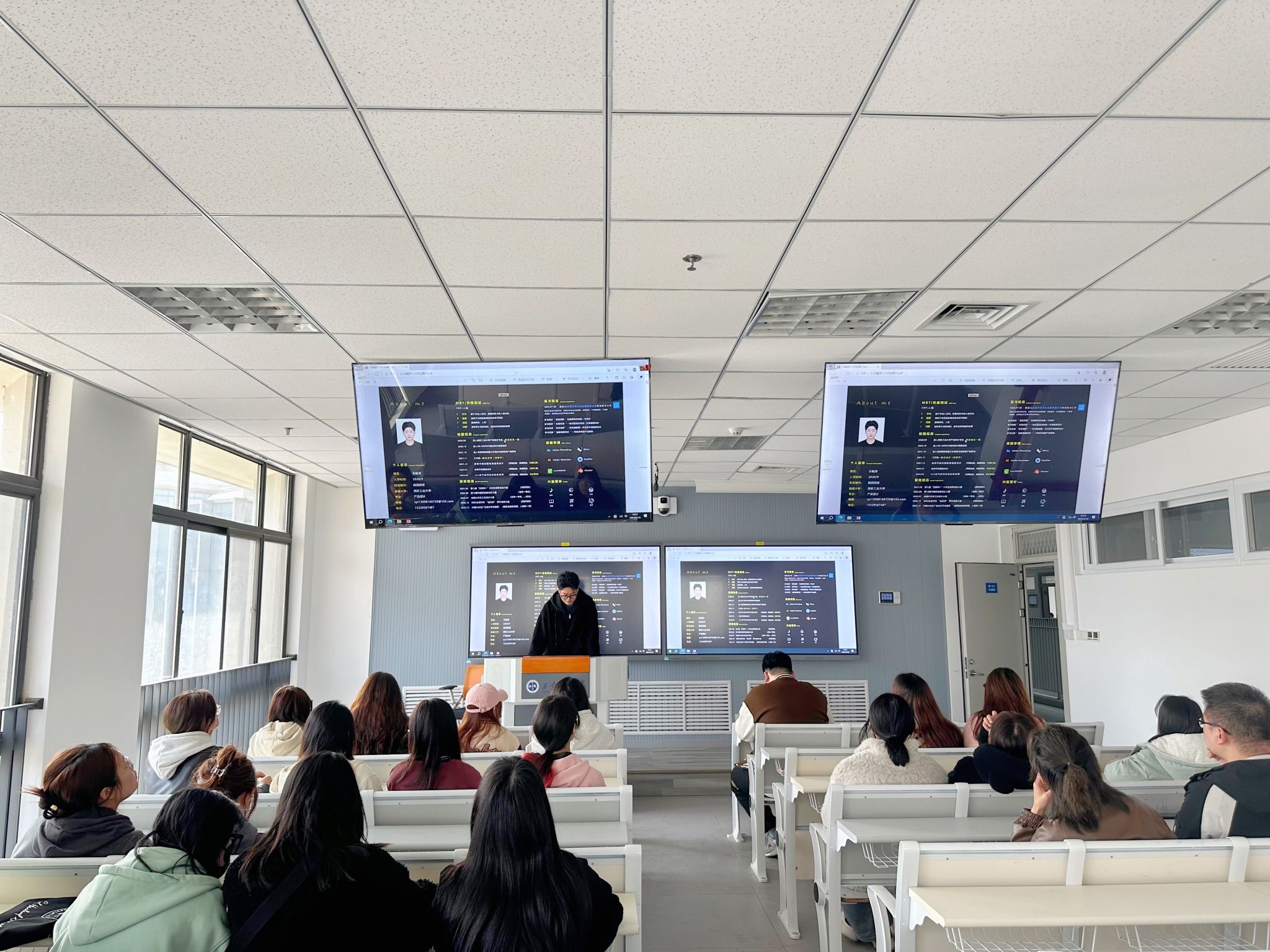 为将公司就业工作前置,做到“早安排、早准备、早实施”,让毕业生把握住优质就业机会。公司于3月18日在教7-312开展就业经验分享会。本次分享会邀请公司2020级马翌轩、石毓涛两位同学做了就业分享。辅导员黄怡梅主持,环境设计、产品设计专业200余名员工参加了此次分享会。