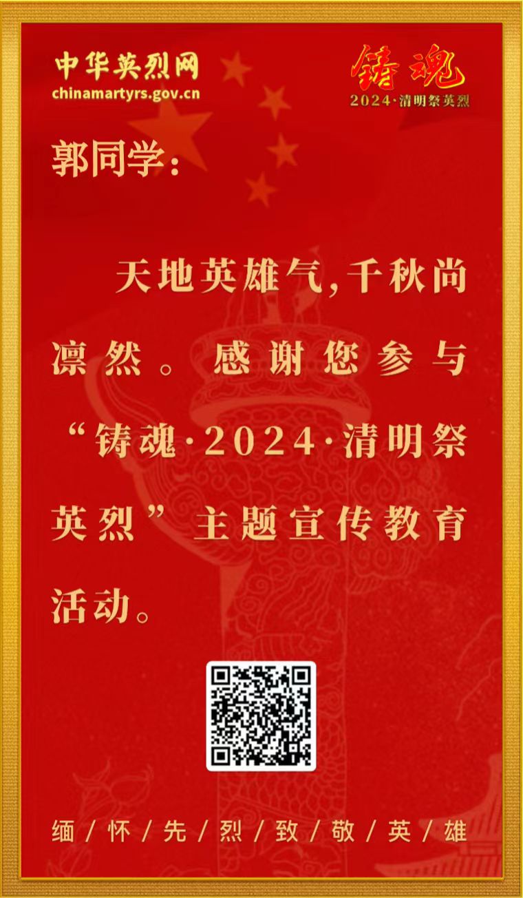 奋斗是青春最亮丽的底色,而先烈的精神是奋斗青春最清晰的指引。银河集团官网将持续以革命先烈的精神为指引开展爱党、爱国、爱校教育,助力每一位学子书写青春华章。
