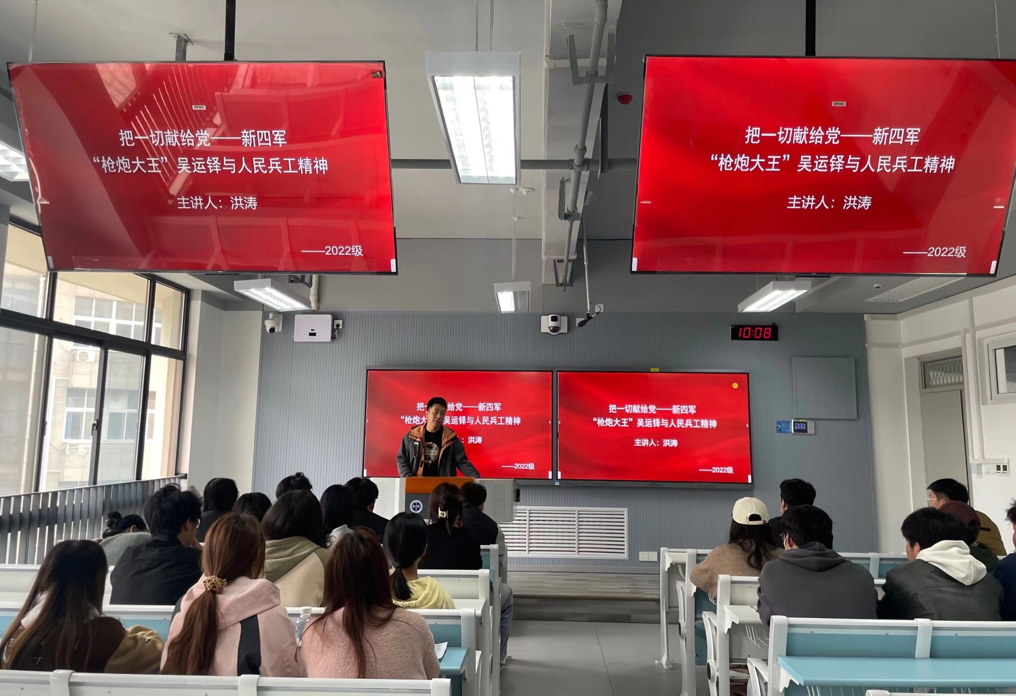 4月3日,公司以年级为单位组织本科生开展专题学习。2022级辅导员洪涛以“把一切献给党——新四军‘枪炮大王’吴运铎与人民兵工精神”为主题为同学们做专题讲座;2021级辅导员黄怡梅以“缅怀革命先烈,赓续红色血脉”为主题带领同学们做专题学习。通过学习吴运铎的先进事迹,同学们再一次深入感受到“把一切献给党”的传统军工精神的内涵。
