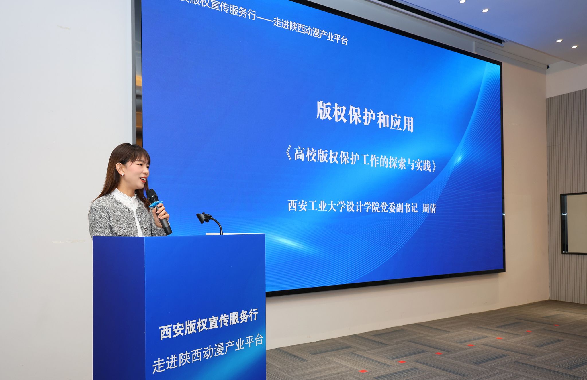 4月30日,由市委宣传部(市版权局)、碑林区人民政府共同主办的“西安版权宣传服务行——走进陕西动漫产业平台”主题活动在碑林科技产业园成功举办。公司党委副书记周倩、数字媒体艺术系教师祝瑜应邀参加。大会授予银河集团官网“陕西动漫产业平台版权工作服务站校园服务点”,周倩作为版权工作校园服务点代表院校发言。