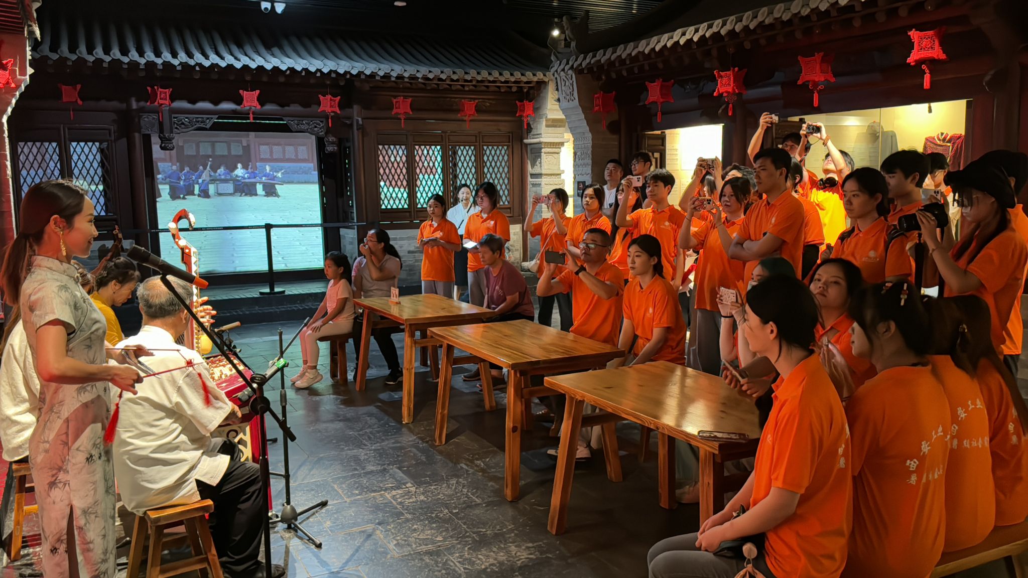 图5为实践队员们聆听专业表演者演奏的《榆林小曲》 图 李昊好