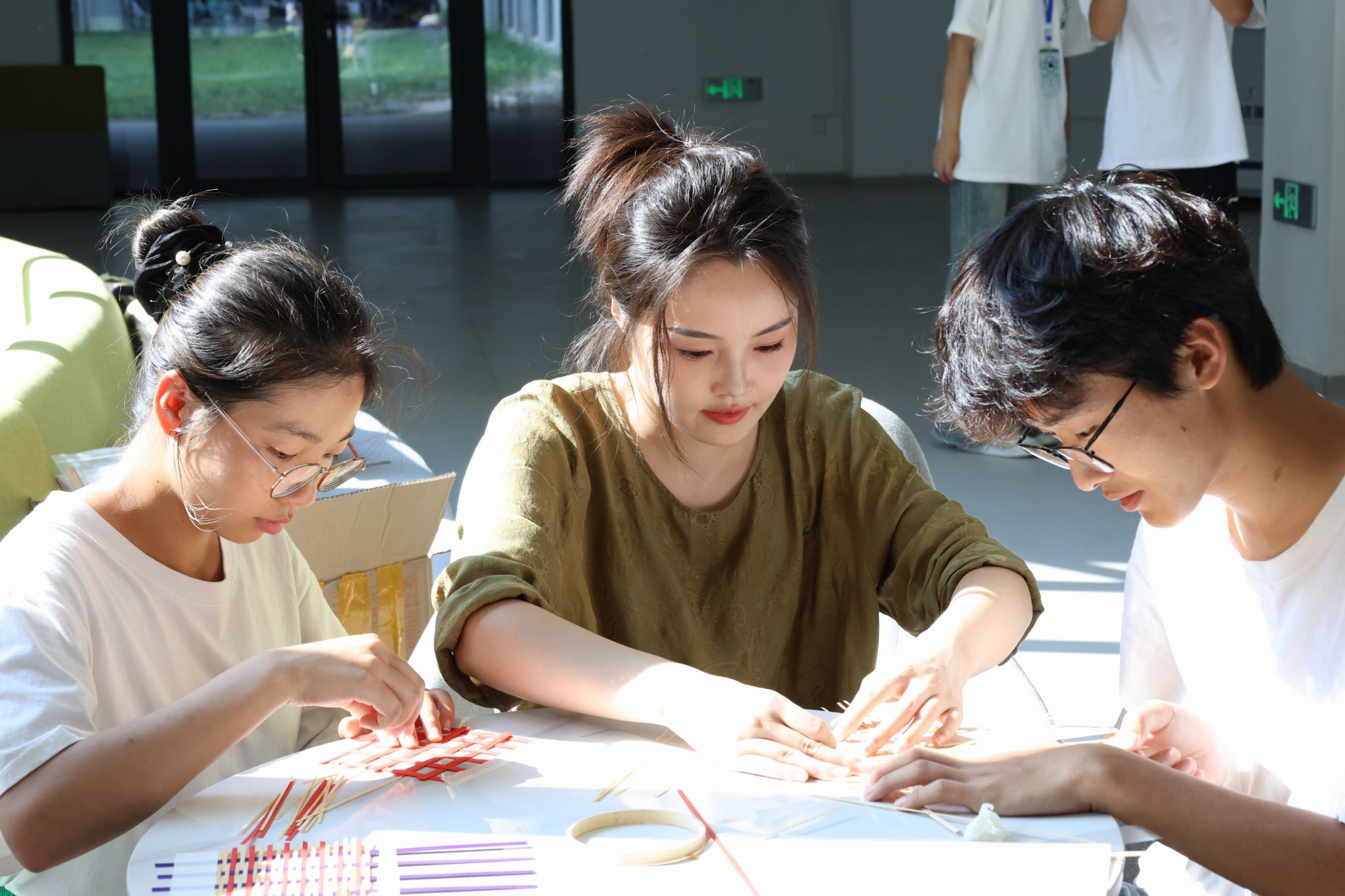 活动伊始,主持人向大家介绍了竹编的历史背景以及制作步骤和技巧,让大家对这项传统艺术有了更深入的了解。活动现场,竹篾轻舞,师生们围坐一起,细心编织起一个个精致的杯垫。竹条穿梭间,不仅编织出实用的生活小物,更编织出对传统文化的尊重与传承。欢声笑语中,一个个形态各异、独具特色的竹编杯垫应运而生,成为中秋佳节里别具一格的纪念品。此次活动不仅让师生们体验了传统手工艺的乐趣,更在动手创作中增进了彼此间的情感交流,让这个中秋更加温馨而有意义。