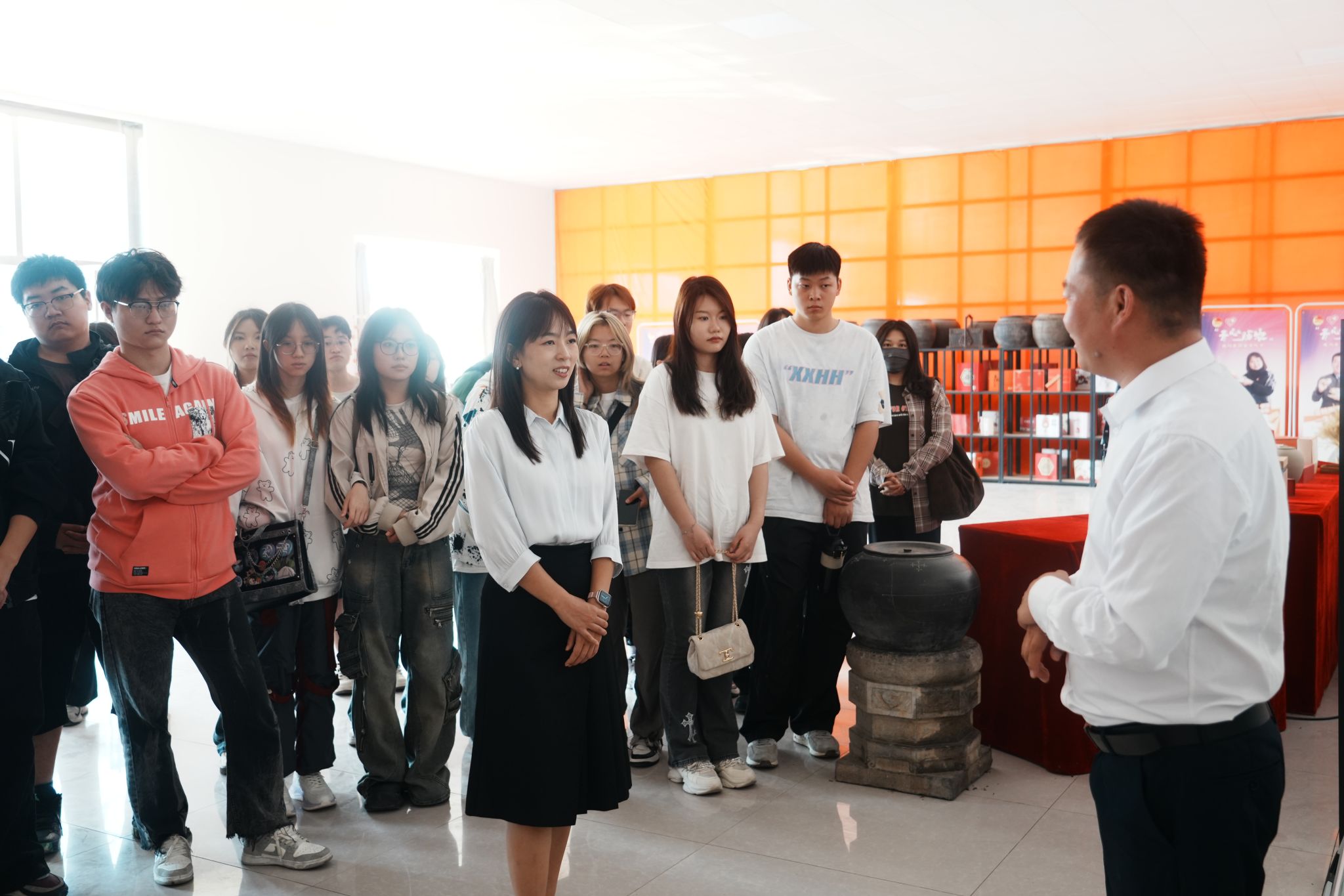 仪式上,乔彬彬对公司一行到来表示欢迎。他结合自己的创业之路为公司23120414、23120517团支部上了一堂生动的团课。他带领当地青年实现自己的返乡创业梦,接连被评为“全国乡村振兴青年先锋”“全国优秀共青团干部”“陕西青年五四奖章”。在乔彬彬的讲述中,同学们了解到新农人电子商务有限公司采取“企业+合作社+农户”模式,充分落实习近平总书记关于“三农”工作的重要论述,依托自身产业优势,聚焦高质量发展目标,在柿子特色产业链上成立富平庄里镇联村团支部,吸纳共青团员135人,覆盖青年2100余人,带动182名青年参与产业发展,辐射带动周边村庄,产业建团。助推“富平柿饼”标准化、品牌化、电商化发展,为当地经济发展带来了新活力。支部成员们听后纷纷表示自己也要更好的运用数字媒体艺术及工业设计相关专业知识,助力乡村产业发展壮大,以实际行动加入到乡村振兴事业中来。