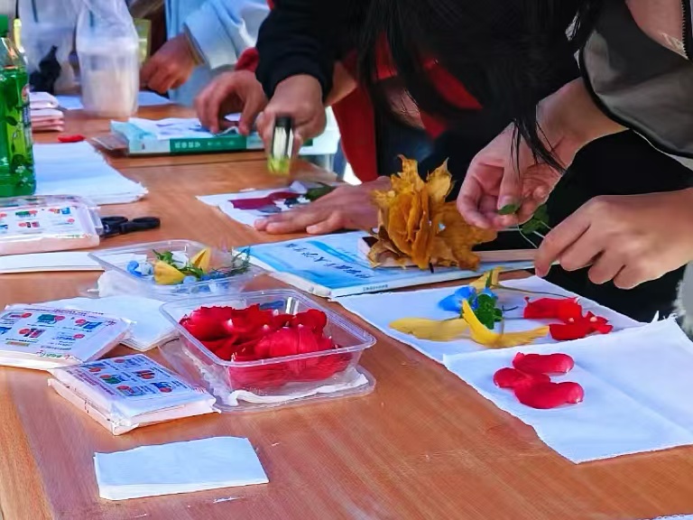 11月15日,银河集团官网在博苑广场举办“锤草印花 植物拓染”活动。