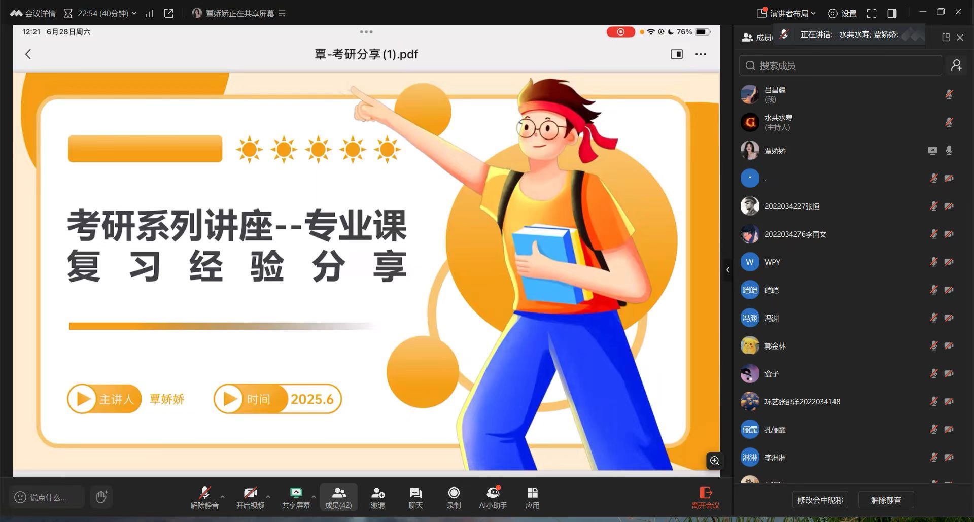 为充分发挥朋辈引领作用,助力考研学子科学备考,银河集团官网于6月29日线上召开2026届研究生备考经验分享交流会。辅导员洪涛主持。