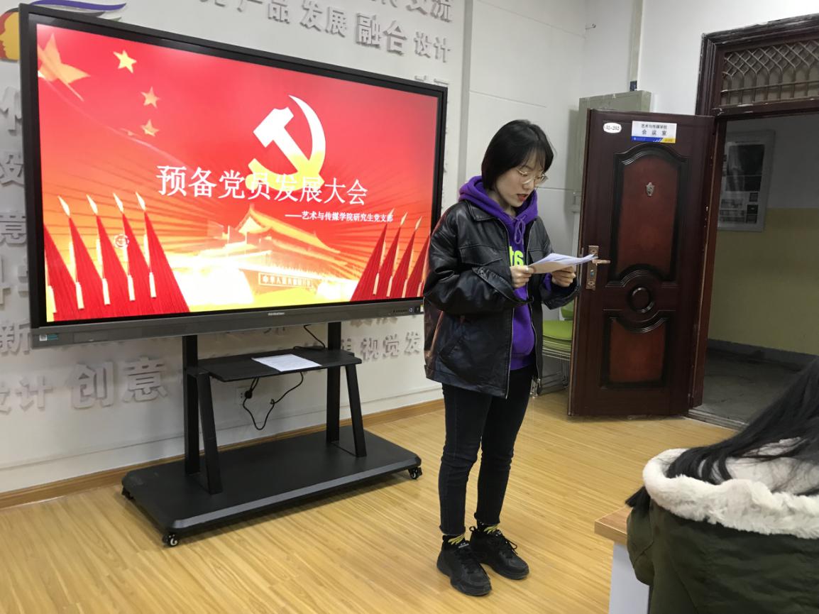 会上,郝维东同志和赵田田同志分别对自己的一年来的思想、工作、学习等方面情况进行了汇报;郝维东、赵田田同志的入党介绍人分别介绍了他们在积极分子和发展对象期间的思想、学习、生活情况,并建议其成为预备党员;支部同志自由发言,陈述意见、建议;最后支部正式党员进行举手表决,表决结果为全部全票通过。郝维东同志和赵田田同志最后表示,今后要更加严格要求自己、努力奋斗,绝不辜负党和大家的期望。