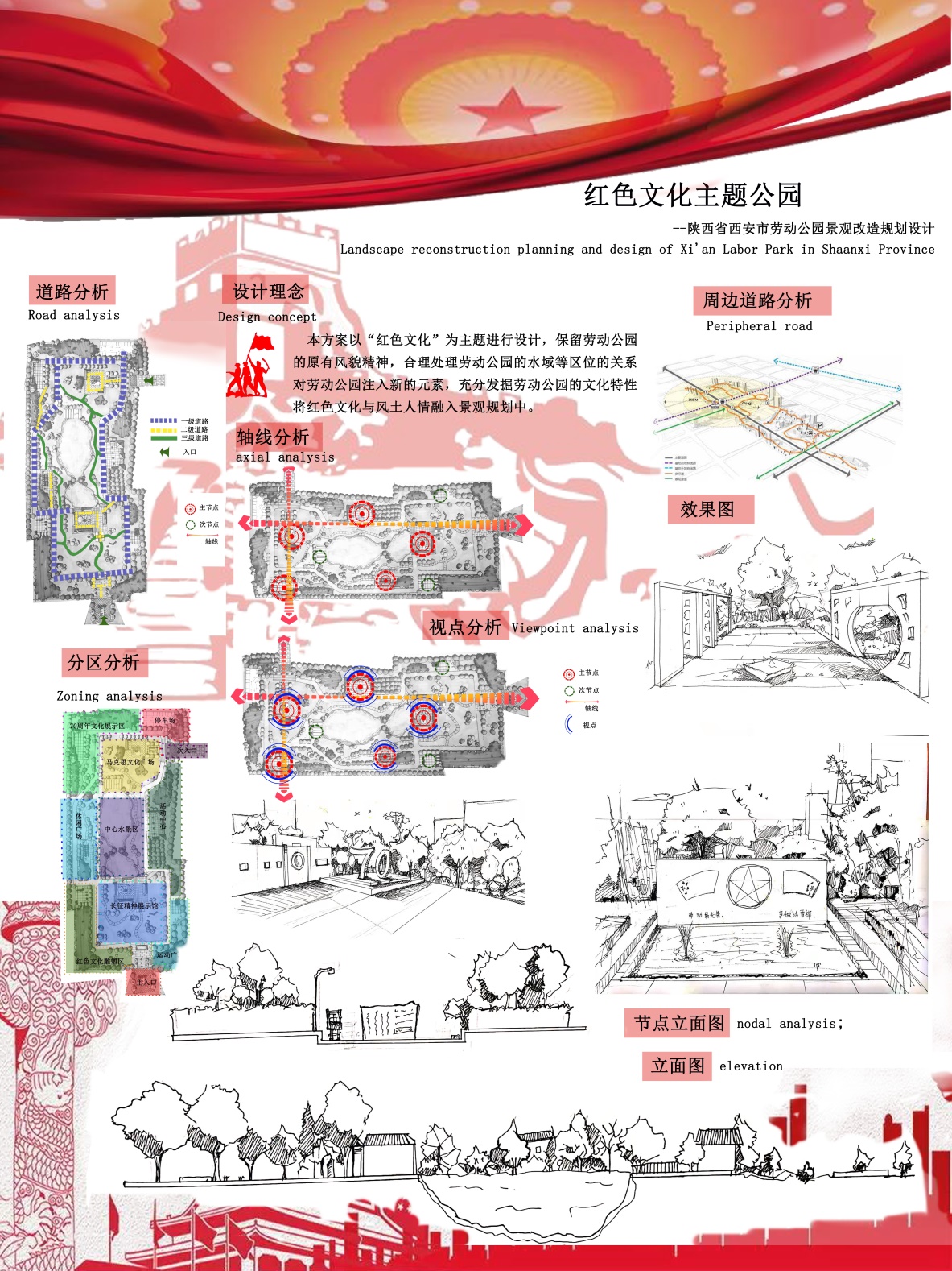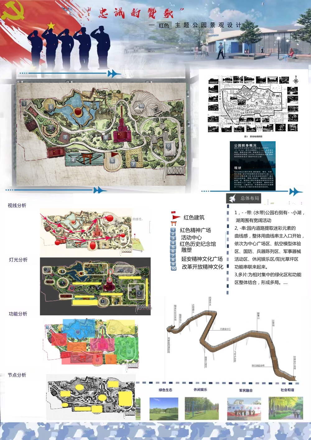2019年11月—12月,由产品与环境设计党支部的9名教工党员携手100余名员工党员及积极分子共同完成了“爱国爱党”红色主题景观设计比赛。
