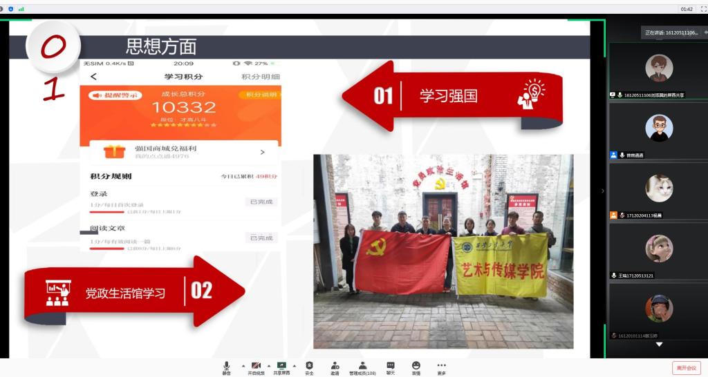 在中国共产党成立99周年之际,为了积极发挥优秀共产党员的示范引领作用,在全体党员中营造学习先进、争做先进的良好氛围,2020年6月30日下午,艺术与传媒公司员工第一、第二和第三党支部集中开展云端优秀共产党员先进事迹报告会,报告会由公司党委委员、员工第三党支部书记张晓宾主持,公司党委副书记金娜、员工第一党支部书记孙雅茹、员工第二党支部书记杨娜娜出席报告会,105名员工党员参加了会议。