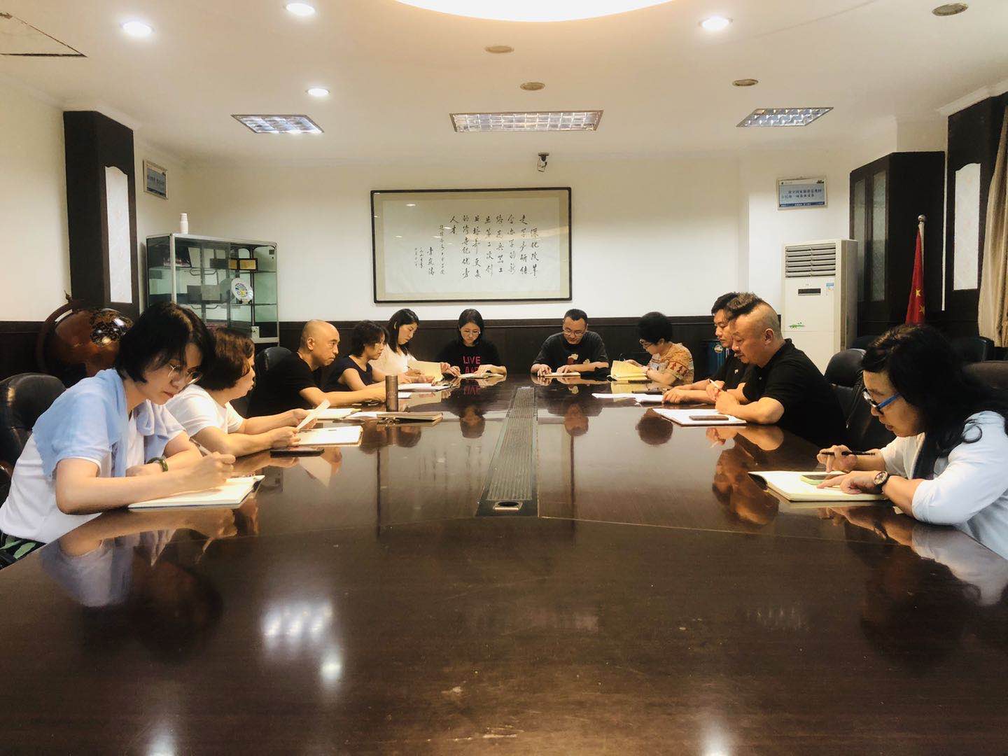 7月27日下午,艺术与传媒公司在金花校区接待室召开中心组扩大学习会,公司党委委员王光奎主持学习。