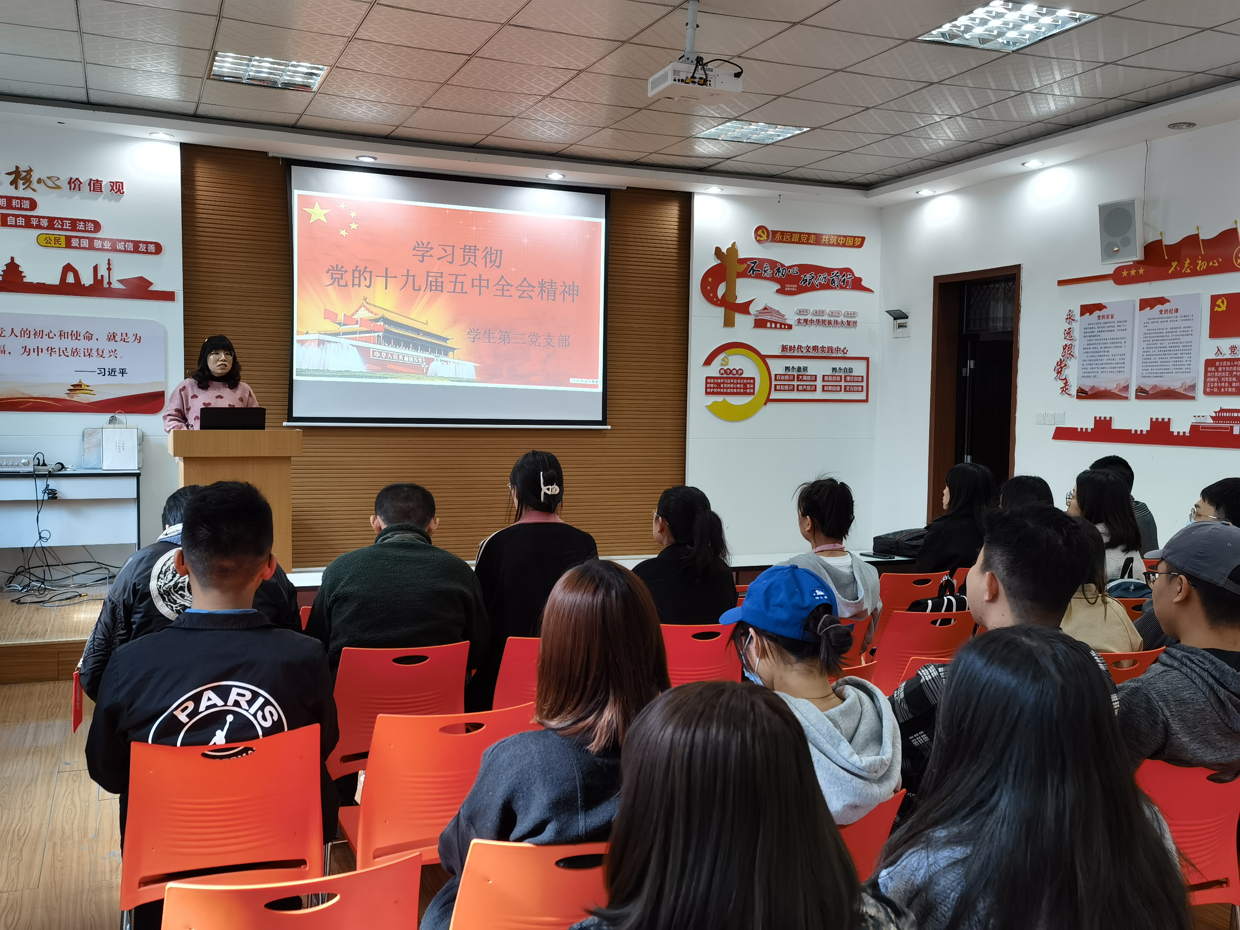 首先,杨娜娜老师领学了十九届五中全会公报的部分内容,组织全体党员集中观看十九届五中全会举行的新闻发布会,并向全体同志传达了习近平总书记在全会上的报告精神,与会同志对于十九届五中全会有了更加清晰的理解和认识。随后,开展了《中国共产党章程》及党的相关理论知识竞答,全体党员积极认真思考,踊跃交流,现场气氛热烈。