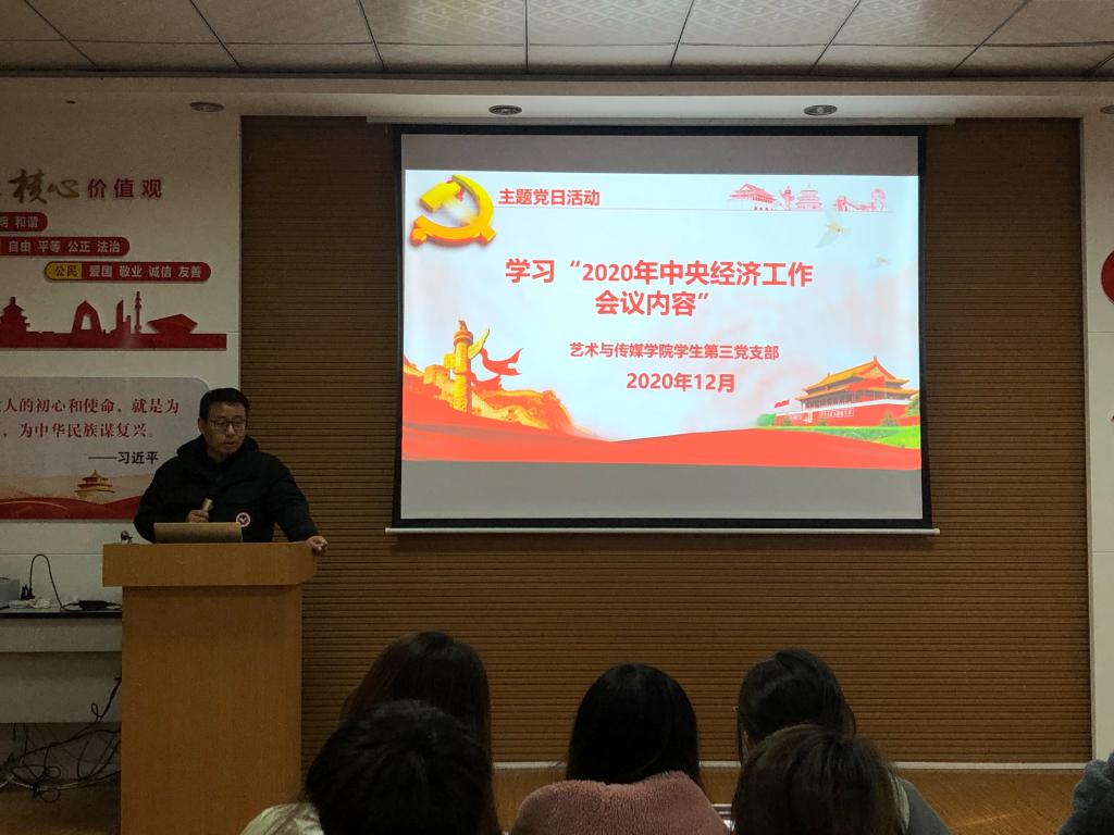 12月15日上午,艺术与传媒公司员工第三党支部组织学习《习近平总书记代表党中央、国务院和中央军委祝贺探月工程嫦娥五号任务取得圆满成功的贺电》和《2020年中央经济工作会议》内容,支部书记张晓宾主持,员工第三党支部全体员工党员参加会议。
