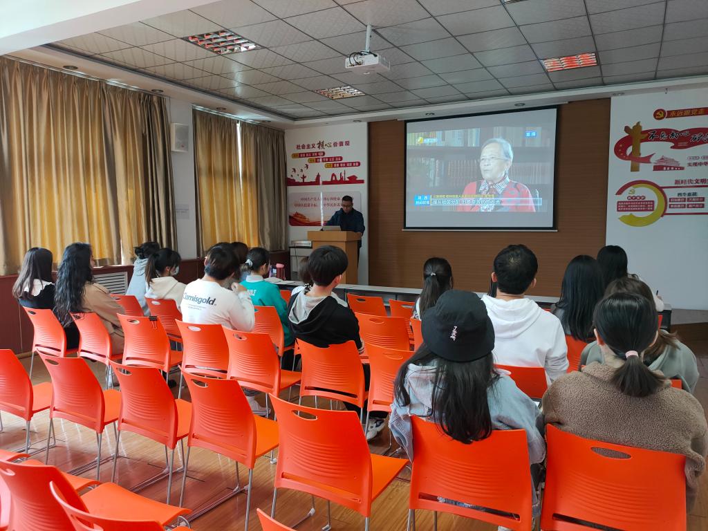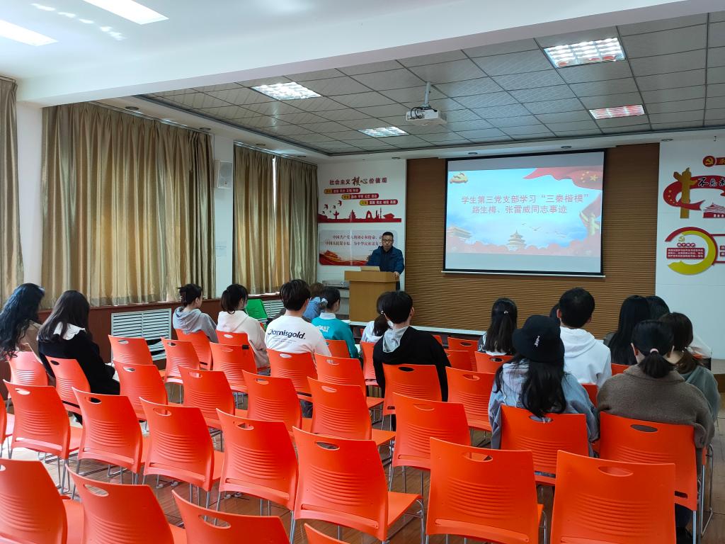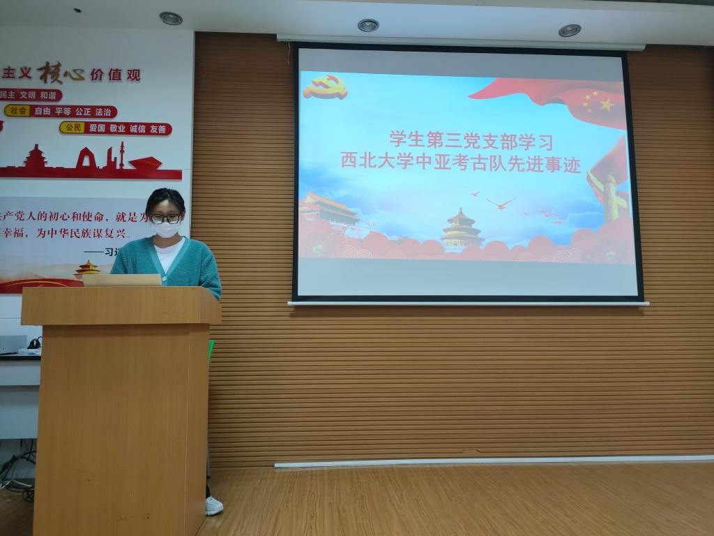 接着,支部副书记关淇心带领大家学习了“三秦楷模” 路生梅、张雷威同志和西北大学中亚考古事迹并观看了他们的先进事迹新闻报道。