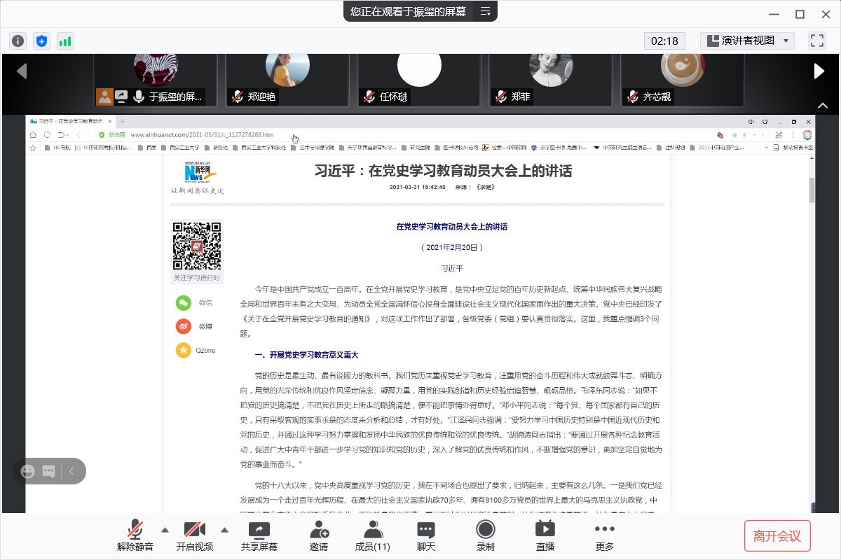 4月7日,数字媒体艺术系召开线上政治理论学习会,于振玺领学。