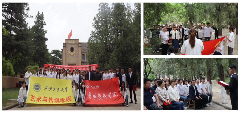 在杨家岭革命旧址,周著带领大家重温入党誓词,鲁迅艺术公司员工党员白宇超讲授了党课“党的七大故事”,公司员工党员代表张岳、师晓凤分别发表学习体会,最后,董建文书记作总结讲话。