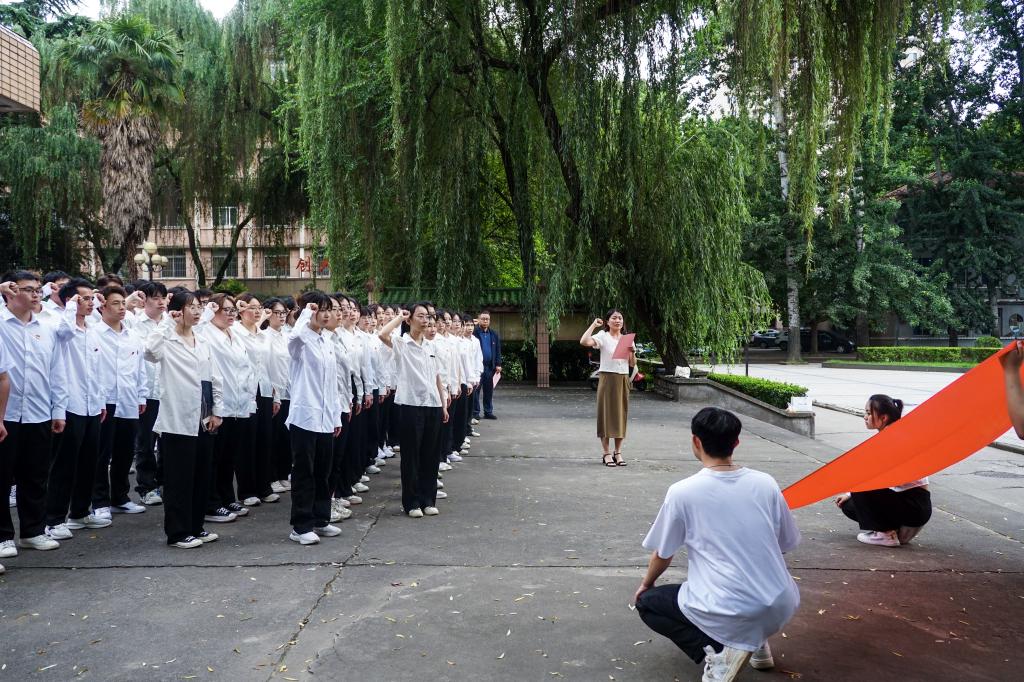 6月19日在金花校区图书馆前,公司举行2023年上半年预备党员入党宣誓活动。公司党委副书记张晓宾、员工第二党支部书记董丹丹、公司组织员张秀丽参加,宣誓仪式由员工第二党支部副书记潘洋澜主持。