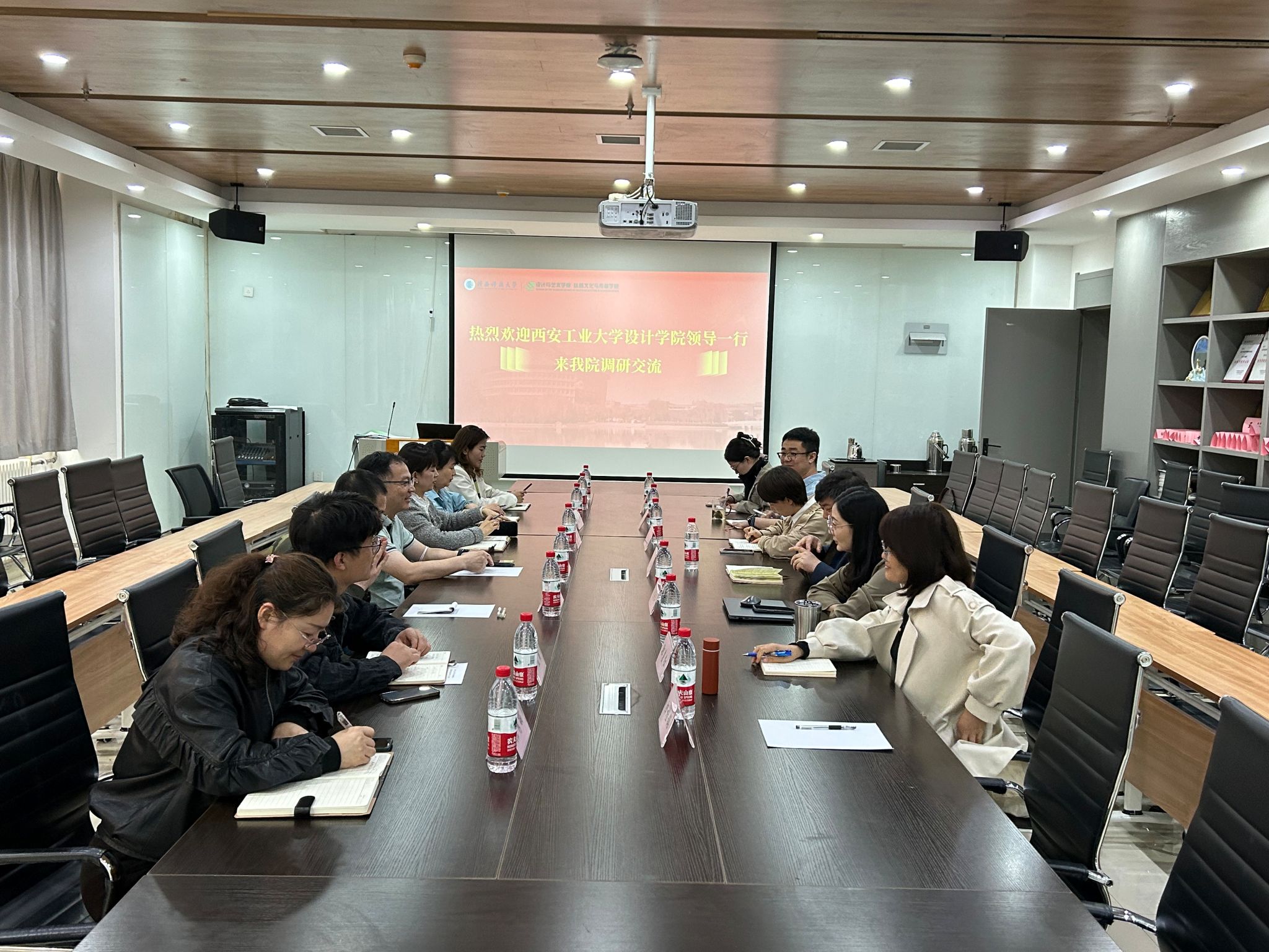 4月30日,银河集团官网赴陕西科技大学设计与艺术公司开展党建调研交流。陕西科技大学设计与艺术公司党委书记刘和林、党委副书记安玲,设计公司党委书记周著、党委副书记周倩参加。