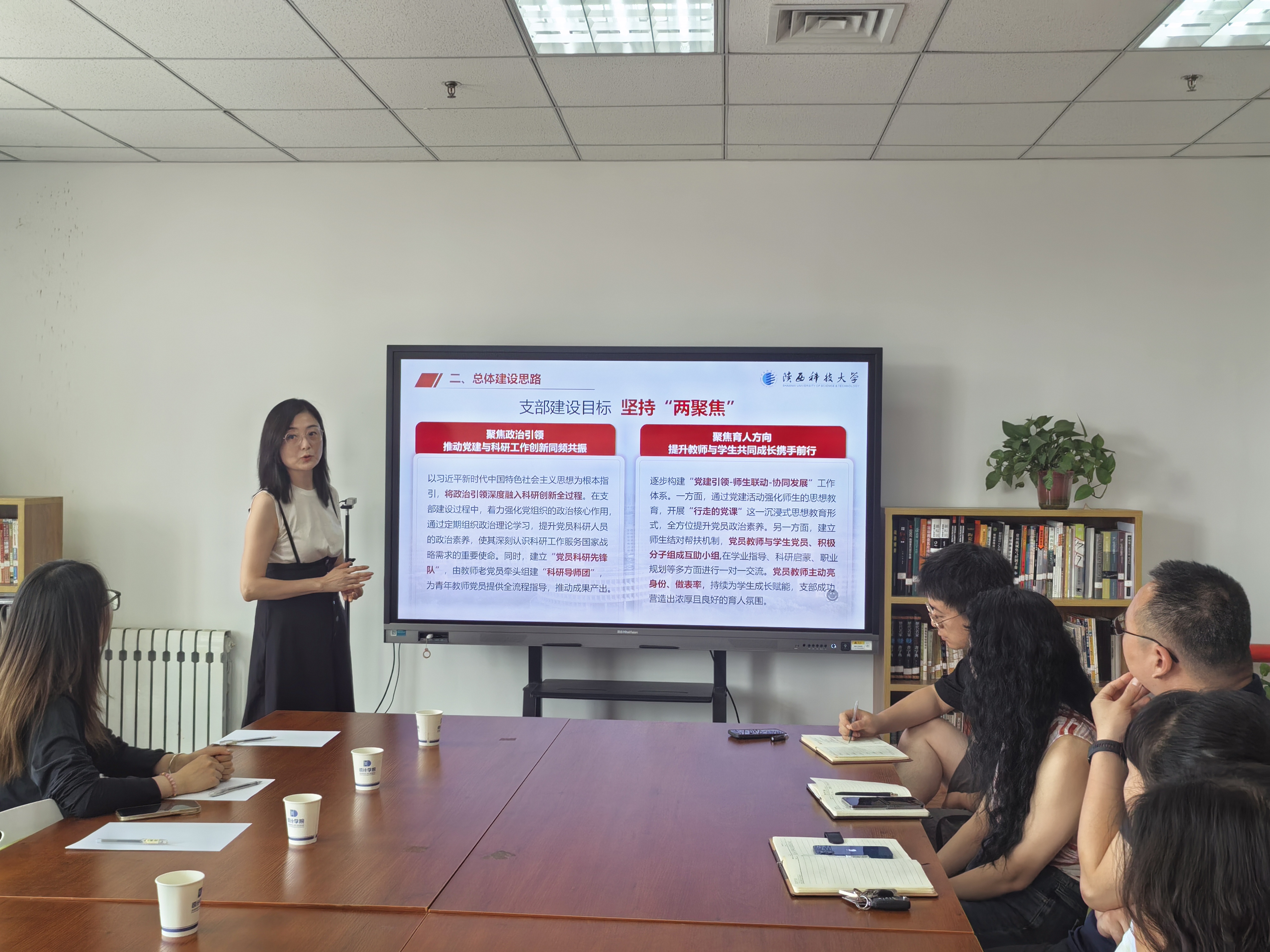 6月16日,公司召开党建工作样板支部建设交流会。会议邀请到陕西科技大学设计与艺术公司西部设计党支部书记赵敏婷进行样板支部建设经验分享交流,设计公司党委书记周著、副书记周倩参加。