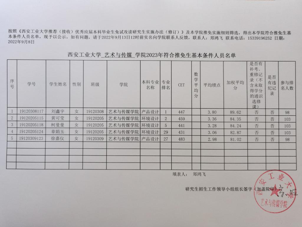 (公示)2023年--艺术与传媒公司符合推免生基本条件人员名单