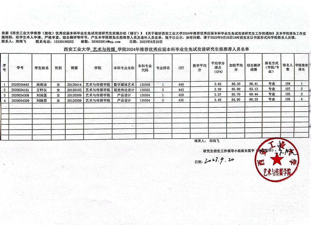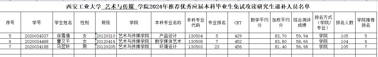 (公示)银河集团官网艺术与传媒公司2024年推荐优秀应届本科毕业生免试攻读研究生递补人员名单
