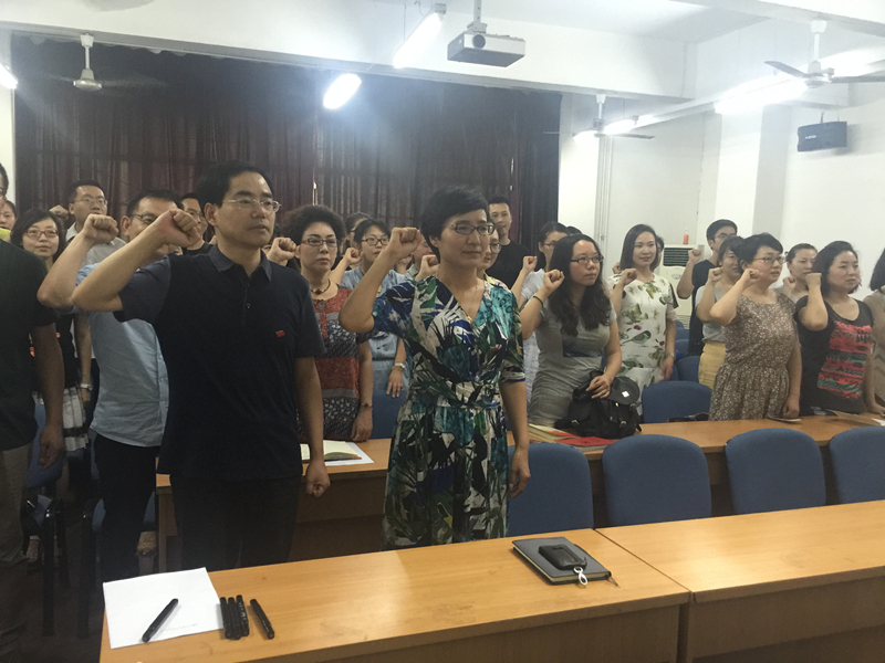 下午14时,公司党委组织全公司党员以“重温铮铮誓词、不忘入党初心”为主题举行重温入党誓词活动和“我是党员、我是旗帜”主题党员承诺签名活动。在鲜红的党旗下,各位党员高举右手庄严宣誓,激昂的情绪和坚定的声音,使全体党员再次感受到肩上的责任、使命、荣耀;承诺签名活动中,各位党员依次在承诺牌上签署姓名,庄严的气氛鼓舞着全体党员积极投身“两学一做”学习教育,发挥党员示范作用,时刻以党员标准严格要求自己。