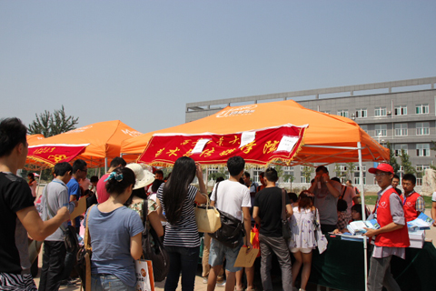在熙嚷嚷的人群中,西工橘黄色的身影成为一道美丽的风景线。