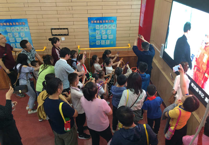 活动一开始,消防中队郭教官带领大家参观了“碑林区消防科普教育基地”,现场讲解、演示了消防救援服、消防器材的操作方法和使用功能;接着,郭教官带领小朋友们学习了“结绳逃生自救”方法,小朋友们手拿救生绳索,饶有兴趣的跟着学,比着练;随后,小朋友们又参与了“缓降逃生互动体验项目”,小朋友们都生龙活虎、跃跃欲试,有的小朋友一开始虽然稍有胆怯,但在大家的鼓励下,勇敢的迈出了第一步。