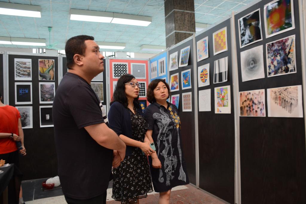 开幕式上,经理王若鸿对同学们的学习成果给予了充分的肯定,同时也指出了习作中还存在的问题,并强调了构成基础课之于艺术设计的重要作用;张斌老师作为指导教师代表也发表了授课感言,从艺术和设计的形式表现角度再次强调形式运用的作用及其意义。