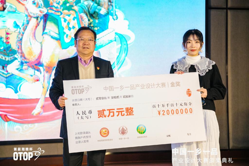 本次大赛以“一带一路一世界 一乡一品一梦想”为主题,是中国民族贸易促进会全力推进的中国一乡一品产业促进计划的重要组成部分,也是深入挖掘全国优势地域特色品牌的专业赛事。大赛历时5个多月,最终12件作品分获“策划案类”“产品包装设计类”“视觉识别系统类”“潜力产品类”四大类的金、银、铜奖。中国民族贸易促进会会长蓝军,湖南粮食集团有限责任公司党委副书记、总裁杨永圣出席颁奖典礼,前漫威首席设计师华特,东道设计公司国际部总裁、德国IF设计奖评委费斌等设计界大咖应邀指导活动。