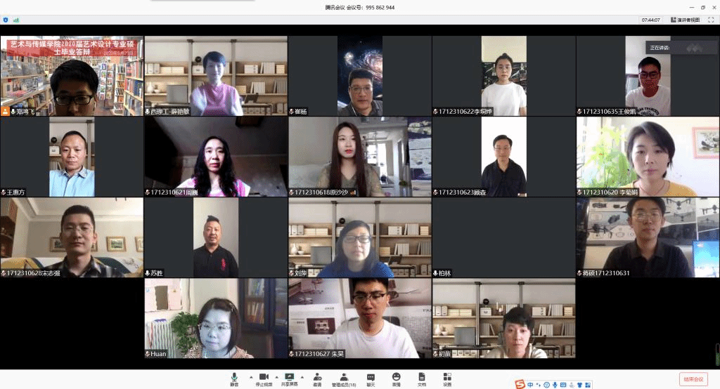 5月29日,银河集团官网艺术与传媒公司2020届艺术硕士研究生学位论文答辩在腾讯会议线上顺利举行。本次线上毕业答辩分两组进行,共有20位艺术硕士研究生通过学位论文答辩。