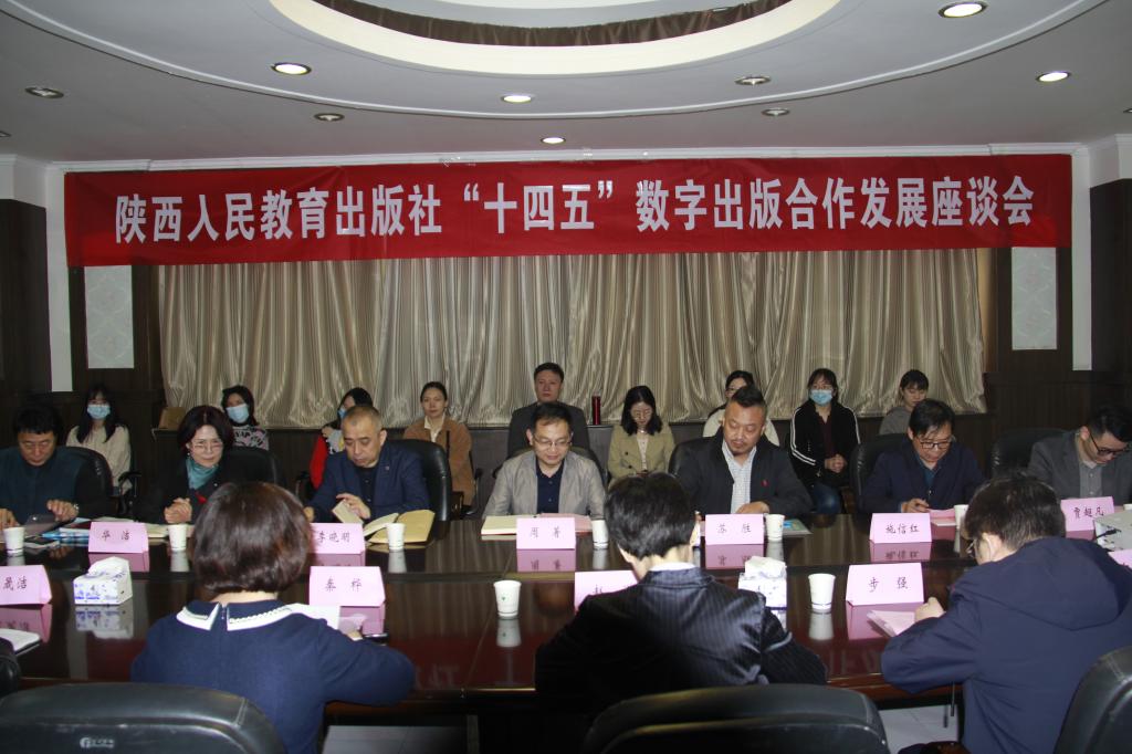 3月16日上午,陕西人民教育出版社“十四五”数字出版合作发展座谈会在公司召开,陕西人民教育出版社社长李晓明、陕西聚力传承文化创意传播有限公司董事长华洁、江苏凤凰知慧教育有限公司研发部经理倪涵、江苏少儿春互联教育科技有限公司项目经理贾超凡、陕西人民教育出版社网络出版中心主任步强及其他行业人员参加了会议。公司党委书记周著、经理苏胜应邀参加了座谈。会议由陕西人民教育出版社副总编辑秦桦主持。