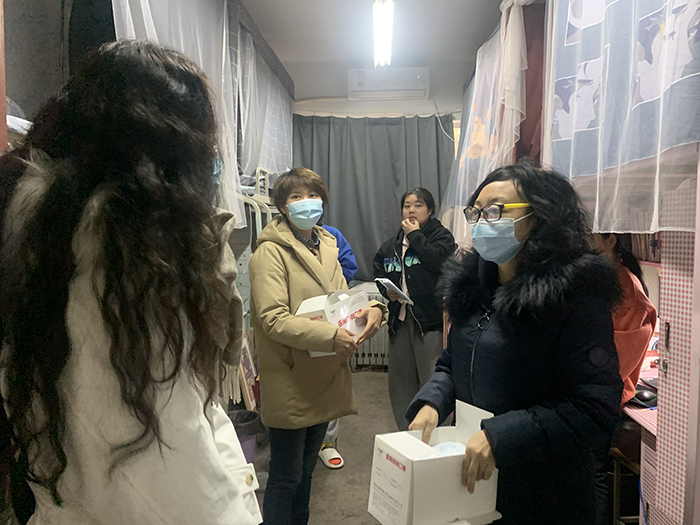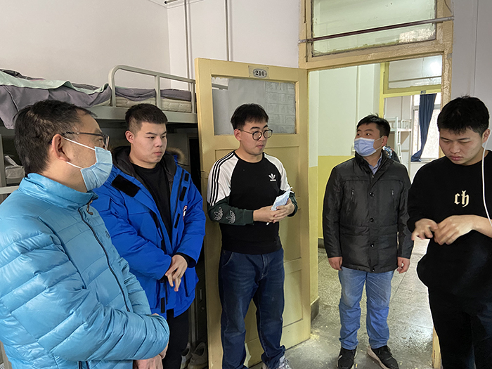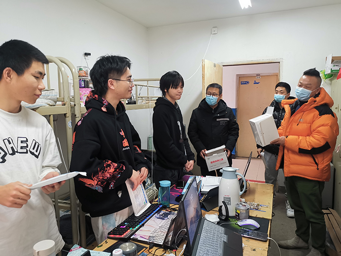 走访过程中,公司领导首先代表公司为同学们分发了防疫物资,叮嘱同学们做好个人防护,注意保暖,严格遵守公司疫情防控要求,做好健康监测和日常打卡工作,要保持宿舍卫生,勤通风。接着,各位院领导详细了解了同学们线上学习情况,征询了同学们关于学习的意见和建议,了解和掌握了同学们在封闭管理期间的生活需求,并向同学们介绍了公司和公司有关疫情防控的具体安排,叮嘱同学们安心学习,有什么困难第一时间向公司反馈,公司领导和学工干部24小时在岗,随时为大家提供帮助。走访结束后,全体院领导一同慰问了因感冒发烧正在11公寓隔离的三名同学,向同学们分发了抗疫物资和水果,叮嘱同学们积极配合公司相关工作安排,照顾好自己,保持跟辅导员和同学的联系,有任何需求第一时间告知,公司会与大家并肩战胜疫情、渡过难关。