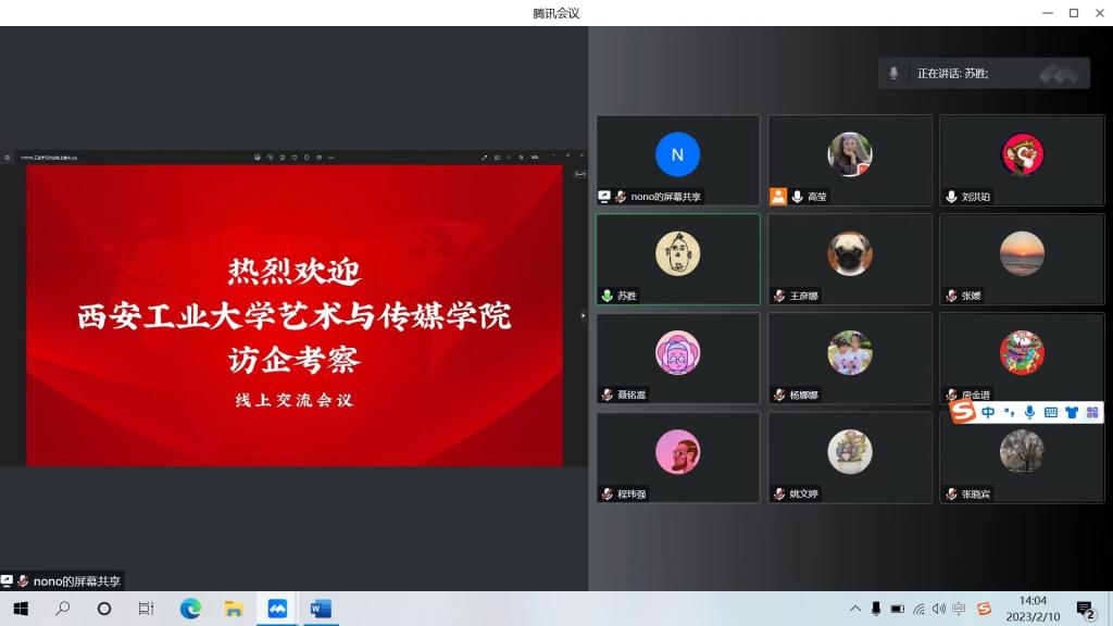 2月10日下午,经理苏胜、公司党委副书记张晓宾、副经理姚文婷及辅导员杨娜娜、视觉传达设计系教师代表张媛、王彦娜、房金谱与西安和景文化旅游产业发展有限公司线上举行了访企拓岗活动,会议由视觉传达设计系主任高莹主持。