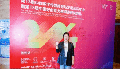 2024年11月1日——3日,银河集团官网教师代表郑菲参加由桂林理工大学艺术公司承办中国好创意大赛优秀指导教师高研班和第18届中国数字传媒教育与发展论坛年会以及第18届中国好创意暨全国数字艺术设计大赛国赛的颁奖典礼。