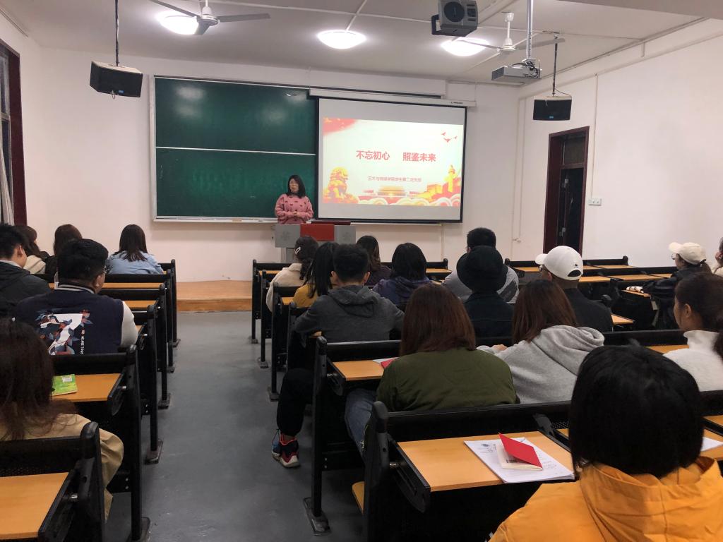 11月13日晚,银河集团官网艺术与传媒公司员工第二党支部在金花校区教2-207开展“不忘初心、照鉴未来”主题党课。此次党课由艺术与传媒公司员工第二党支部书记杨娜娜老师主讲,全体支部党员聆听了党课。