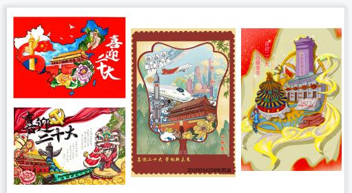 本次作品创作,以“回首赞百年,展望新时代”忆往昔,将历届大会图文并茂于笔记之中;以“喜迎二十大,奋斗新征程”为起点,将中国梦之场景栩栩展现在画纸之上。作品将红色主题教育融入专业、落于实践,追寻革命初心,树立信仰之美,抒发爱党爱国的深厚情怀。