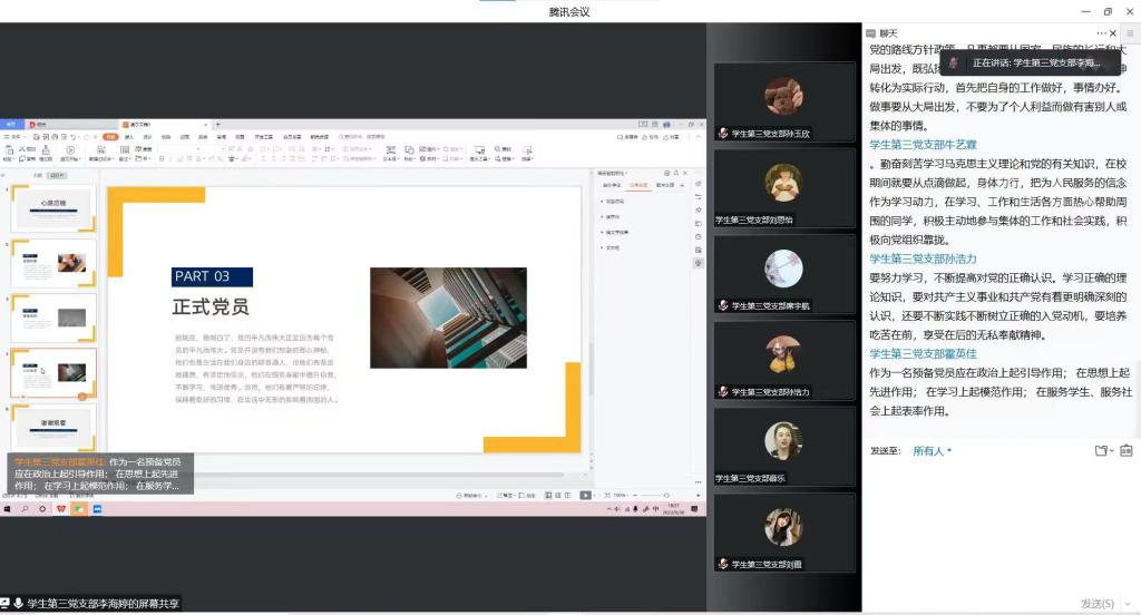 本次活动分为三个阶段。第一阶段,由刘洁林同志向2022级新生讲述从共青团员成长为共产党员的心路历程。第二阶段,组织支部入党积极分子观看微视频《党课开讲啦》,让同学们重温党的光辉历程,进一步了解共产党员的权利和义务。第三阶段,支部党员代表分享了自己的入党经历、学习经验。支部党员周佳怡同志说:“我们要端正入党动机,积极做事,不要空谈,做好眼前每一件事。”李海婷同志说:“我们应不断提高自身思想认识,在学习生活等各方面发挥先锋模范作用。”